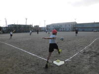 4年生 雨上がりのグラウンドで体育「キックベース」を行っていました。