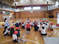 こちらも 3年生 体育館でボール運動をしていました。横に投げる 上にほうる 下から転がす。