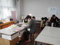 就学時の健診の間に、学校歯科医の田中先生に、虫歯になる仕組みや歯列(歯並び)等の