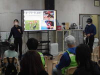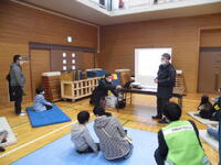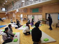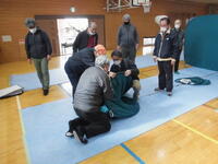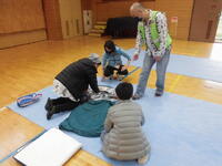 体育館で、AEDの講座を行っていました。心肺停止の突然死の方が年間8万人もいること。