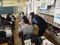 好きな本を紹介しあいます。上手に絵をかいて、本の内容が伝わりやすいようにしています。