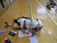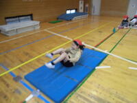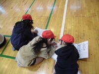 体育の学習カードを書いて、マット遊びに挑戦です。「ゆりかご」や「前転がり」に挑戦していました。