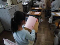こちらのクラスは、国語「もちもちの木」で使う学習カード準備していました。きれいな桜色の台紙です。