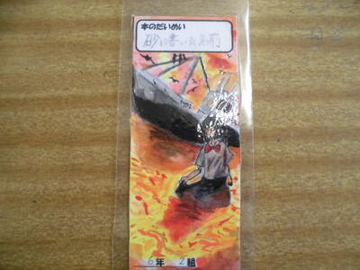 しおりコンテストの表彰     優秀作品も表彰しました。   1年生も上手に仕上げました。  下学年の最優秀は3年生です。