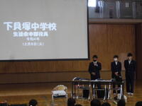 12月6日 今日は、しおりコンテストの表彰と下貝塚中生徒会の訪問がありました。