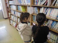 借りるのも随分慣れてきました。友達と相談しながら、面白しろそうな本を見つける子も増えてきました。