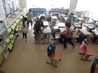 外で遊ぶクラスもありました。    高学年では、大掃除を行うクラスもあります。