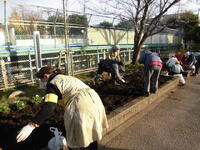 栽培委員会の活動です。地域の方も参加してくれています。 ありがとうございます。
