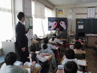 さすが中学生です。よどみなく説明をしてくれました。6年生も真剣に聞いていました。