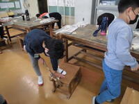 4年生に引き続き、3年生も木工に挑戦です。みんな上手にのこぎりを扱って切っています。