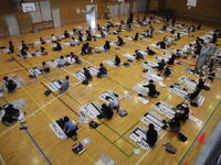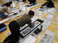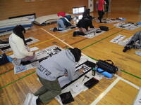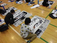体育館で行う前に、教室で一文字ずつ確認です。