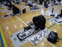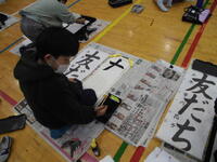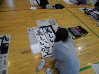12月15日 今日は5,6年生が書き初めにチャレンジです。