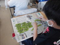 5月2日 今日は食育活動2年生のグリンピースさやむきがありました