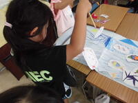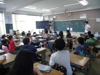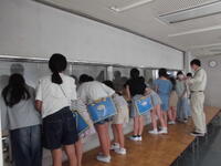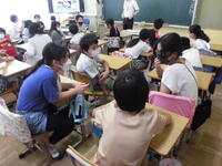 プリントを配ったり、夏休みの宿題や過ごし方を各学級で指導したりしました。 1年生は余った時間に問題を解いて丸付けもしていました。