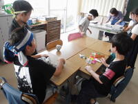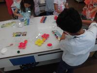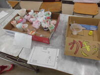 4年生も2クラス「夏祭り」と称して、レクを開催 輪投げも2種類。くじ引きに、かき氷の作り物 スパーボール救い