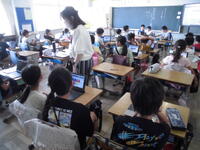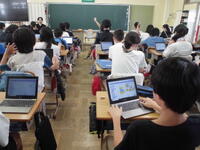 本校はICT支援員さんが来校するのに合わせて、タブレット等の通うよう計画を推進します。今日は双方向のオクリンクの活用の仕方を学習します。