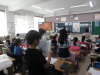 ALTのカルビン先生が英語の授業を行いました。6年生と3年生です。