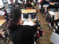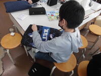 5年生 家庭科「トートバッグづくり」も仕上げです。名前を刺繍している子もいました。