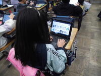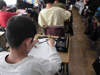 タブレットを使って学習していました。