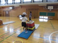 跳び箱遊び だいぶしっかり跳べる子が増えてきました。5段も楽々跳べている子がいます。