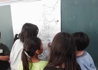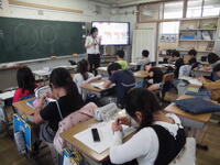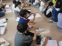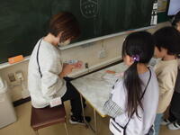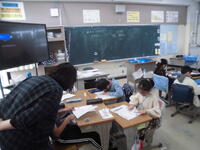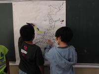 こちらのクラスは、社会科 当道府県の名産を記入しています。 こちらのクラスは理科 温まり方の学習。どうすれば解明できるか実験方法を考えています。