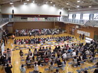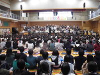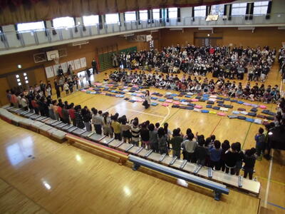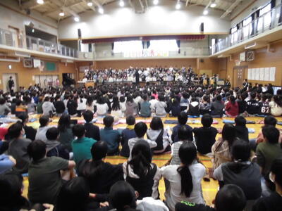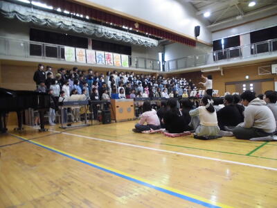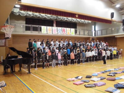 合唱練習です。校内音楽会の前に、今週末市内音楽会に参加します。 体育館での練習も佳境です。