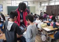 自分で見つけた「絵文字」をタブレットを使って友達と情報交換です。