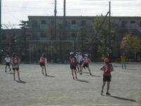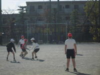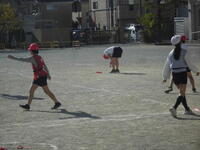 タグラグビーを行っています。運動量たくさんで、上着を脱ぐ子もたくさんいました。
