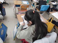 社会 千葉県の特産品である醤油について ビデオで学習です。 こちらのクラスは、算数少人数指導中 単位換算の学習です。