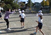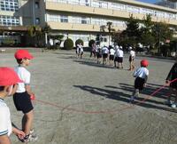 2年生は縄跳びに挑戦! 2つに分かれて長縄にも挑戦です。