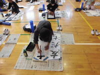 3年生は初めての書初めなので、講師の先生をお招きして、硯の使い方や筆の運びなどから教えていただき、書初め練習を行いました。