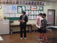 生徒指導主任と6年生が乗ってはいけない4つの「車」について話をしました。