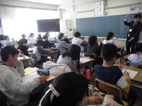 今日は下貝塚中学校生で本校のOB・OGが中学校生活に話に来てくれました。