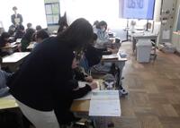 実践講座交流会は題材をもとにグループで話し合い、そのグループに一人ずつ地域の大人の人にはいってもらい、多様な解決方法を