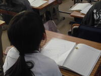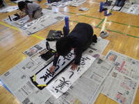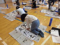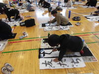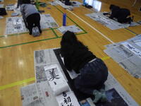 3年生は初めての書初めなので、講師の先生をお招きして、硯の使い方や筆の運びなどから教えていただき、書初め練習を行いました。