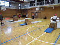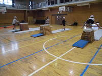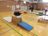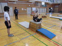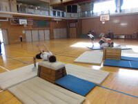 この時期は、5年生と6年生が体育館で跳び箱の学習です。