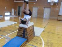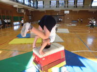 回転系の技に挑戦しています。台上前転 ⇒ ヘッドスプリング OR ネックスプリング ⇒ ハンドスプリング