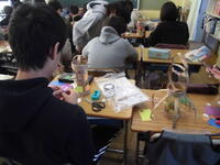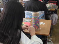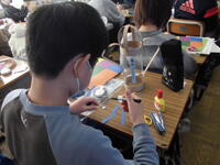こちらのクラスは生活科で、「かざわ」を作っていました。上手に転がるかな?