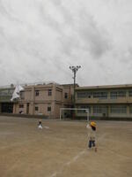 朝から曇り空の一日でしたが、1年生は自分たちで作った凧を校庭であげていました。