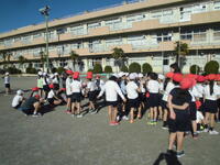 学級対抗リレーを行っていました。朝から、元気いっぱい走り抜けていました。