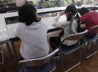 6年1組は算数です 2つの数がわからない時に、どういう決まりがあるのか表を使って調べていきます。