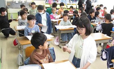今日は代表委員の児童が各クラスに出張し、テーマ募集の説明をしました。