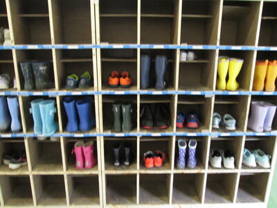 昇降口を確認すると、傘は傘立てに、長靴(運動靴)は下駄箱にしっかり片付けられていました。