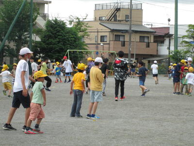 ペアのお兄さんお姉さんが1年生にやさしく声をかけ、一緒に遊ぶ姿はとても微笑ましかったです。