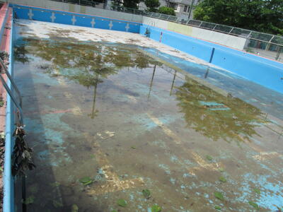 今日はおやじの会の皆様が、プール清掃をしてくださいました。