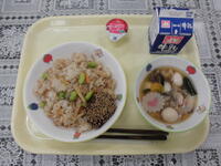 7月1日 今日の給食は「たこめし」 半夏生にちなんでです