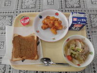 きなこトースト  洋風煮  じゃがたまケチャップ炒め  牛乳  一口ゼリー