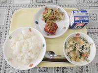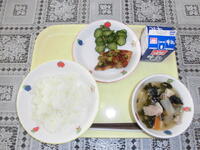 いりこめし  生揚げの生姜醤油焼き  白菜のぐだくさんみそ汁  いももち  牛乳