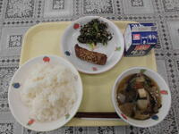 豚肉のかりんと揚げ のり酢和え 田舎汁 ごはん 牛乳