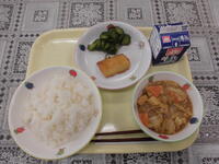 いかの生姜焼き ねぎダレきゅうり 生揚げのみそ炒め ごはん 牛乳